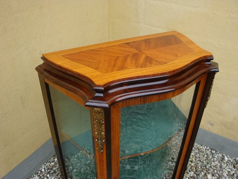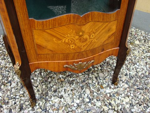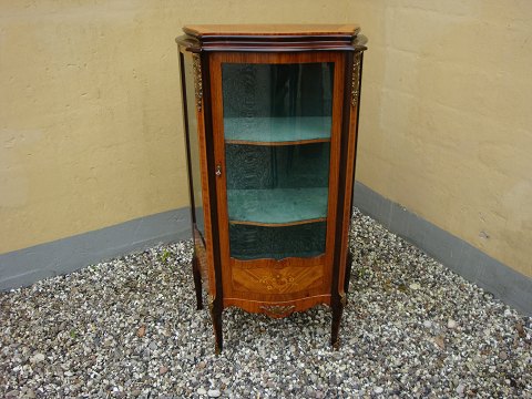 SolgtGlasvitrine med buet dør i rosentræ med intarsia. Vitrinen er i god stand.