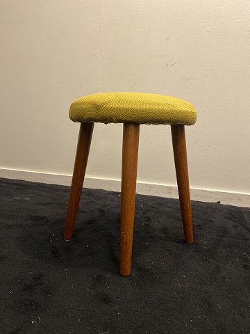 Polstret taburet på ben af teak. Fremstår pæn og velholdt uden nævneværdigee brugsspor.