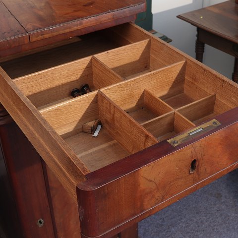 Skrivepult i mahogni med klap, skabe og skuffer,