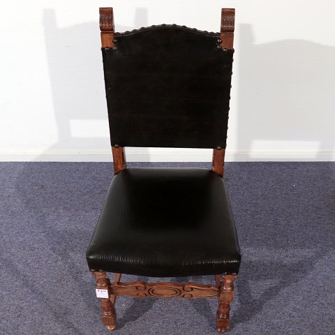 Stol i mahogni med kunstlæder betræk, fra 1930erne.