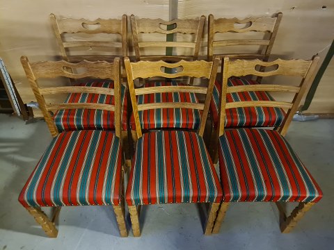 6 Stole i massivt egetræ, fra 1980erne.