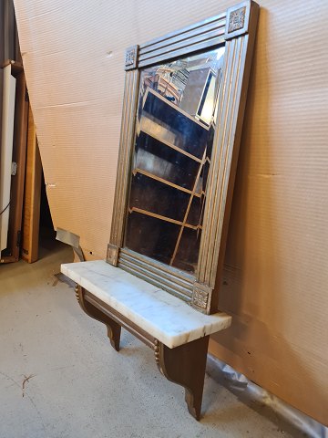 Guldmalet spejl med marmor hylde, fra 1920erne.