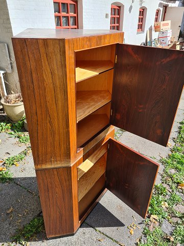 Hjørneskab i palisander fra 1970´erne. Fremstår udmærket velholdt uden nævneværdige brugsspor.