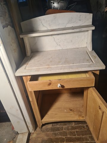 Servante i fyr med mamorplade og opsats. Fremstår pæn og velholdt uden nævneværdige brugsspor.