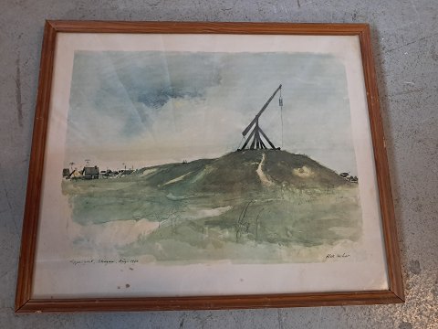 Tryk i ramme af fyrretræ med glas, fra 1960erne.