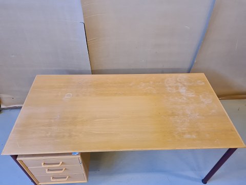 Skrivebord med metal stel og plade i fineret bøgetræ.