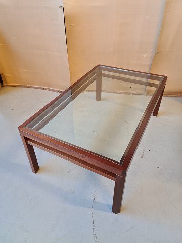 Sofabord i fineret mahogni med glasplade fra 1980erne.