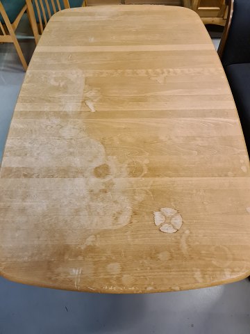 Spisebord med 1 tillægsplade og 6 stole i massivt bøgetræ, fra 2000erne.