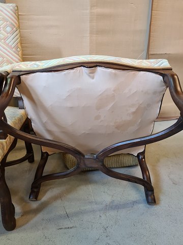 De har slid på armlæn og der medfølger 2 små puder.