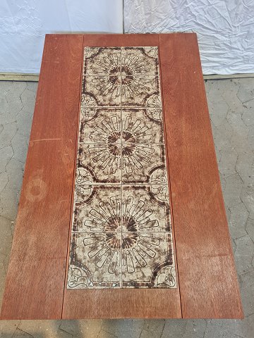 Sofabord i fineret og bejdset egetræ med kakler, fra 1970erne.