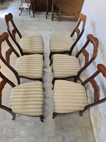 6 Salonstole i massivt bøgetræ med fineret mahogni, fra 1900erne.
