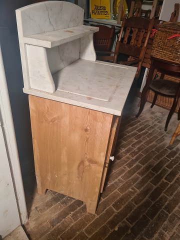 Servante i fyr med mamorplade og opsats. Fremstår pæn og velholdt uden nævneværdige brugsspor.