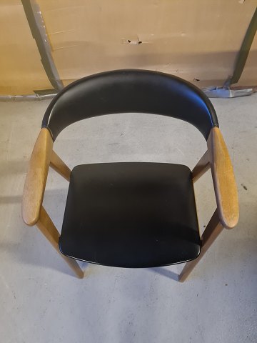 Armstol i massivt bøgetræ med kunstlæder betræk, fra 1960erne.