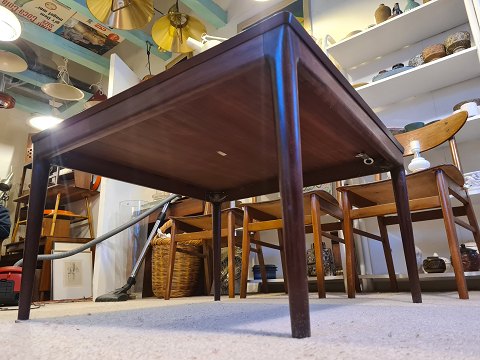 Dansk snedkermester sofabord fra 1960´erne i finéret palisander. Fremstår i rigtig pæn brugt stand.