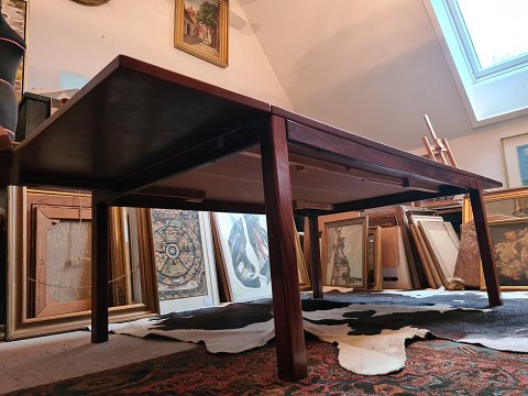 Dansk Design sofabord fra 1970'erne i palisanderfinér. Fremstår velholdt, stabilt og udmærket funktionelt, dog med lidt brugsspor på bordpladen i form af enkelte overfladeridser.