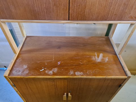 Reolsektion i massivt fyrretræ og fineret teaktræ, fra 1960erne.