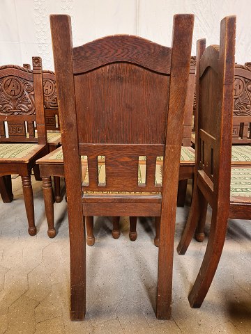 12 Robuste stole i massivt egetræ, fra 1900erne.