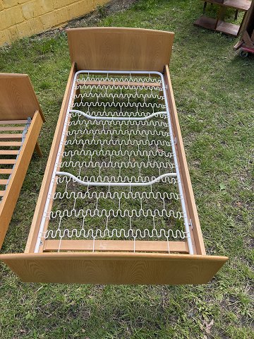 Dansk møbelfabrik et par enkeltmands senge udført i egetræ. Pæn brugt stand. Den ene seng har ikke en bund af lameller.