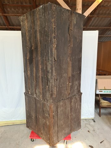 Hjørneskab i massivt egetræ, fra 1860erne.