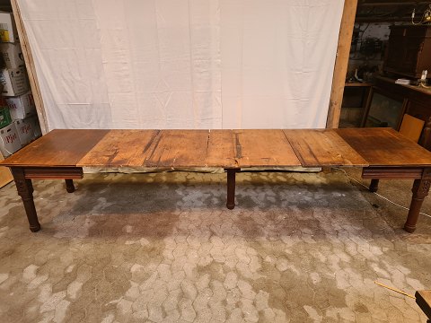 Spisebord i massivt egetræmed 4 tillægsplader, fra 1910erne.