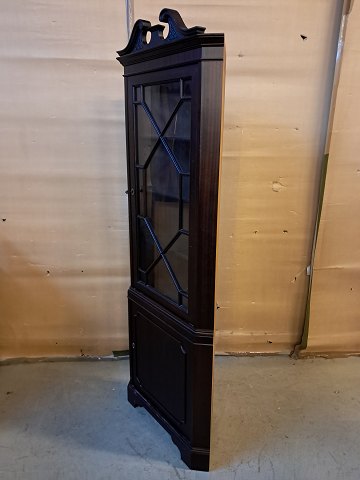 Hjørneskab i fineret mahogni, fra 1980erne.