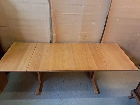 Spisebord med 2 tillægsplader i massivt egetræ, fra 1980erne.