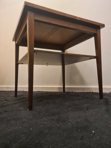 Dansk møbelproducent kvadratisk sofabord med hylde. Udført i fineret palisander samt plade ilagt grønne kakler med blomster dekoration. Fremstillet ca. 1960'erne.