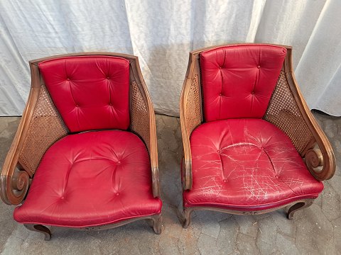2 Lænestole i massivt bøgetræ med rørflet og læderhynder, fra 1980erne.