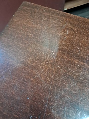 Kvadratisk Haslev sofabord i fineret mahogni, fra 1980erne.