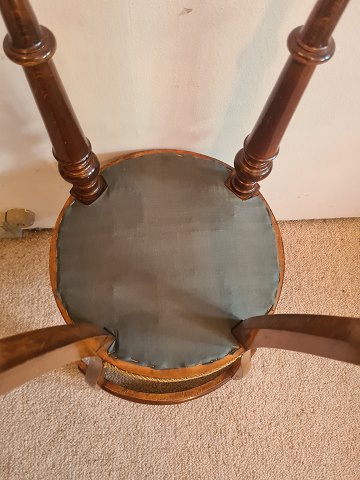 Pianostol fra 1930'erne I mahogni og fyr med broderet sæde. Fremstår pæn og velholdt uden nævneværdige brugsspor.