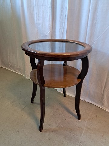 Sidebord i mahogni og bøgetræ med glasplade, fra 1920erne.