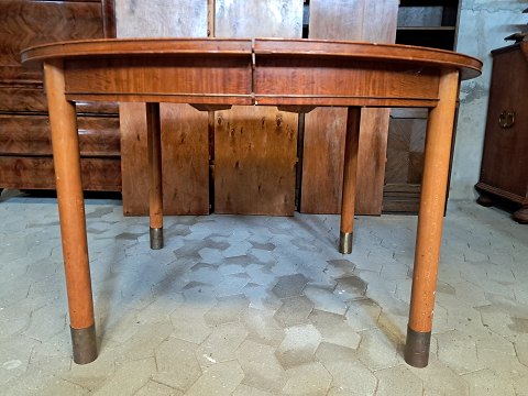 Spisebord i fineret mahogni med 3 tillægsplader, fra 1950erne.