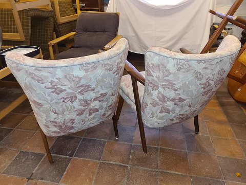 Erhardsen & Andersen par lænestole med stel i teak, betrukket med møbelstof.