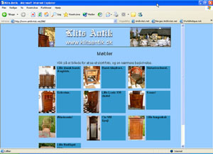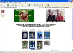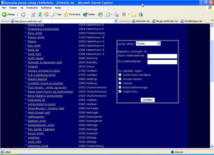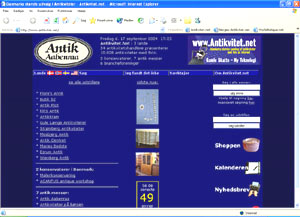 Skærmbillede fra forsiden af antikvitet.net. Udstillerfortegnelse