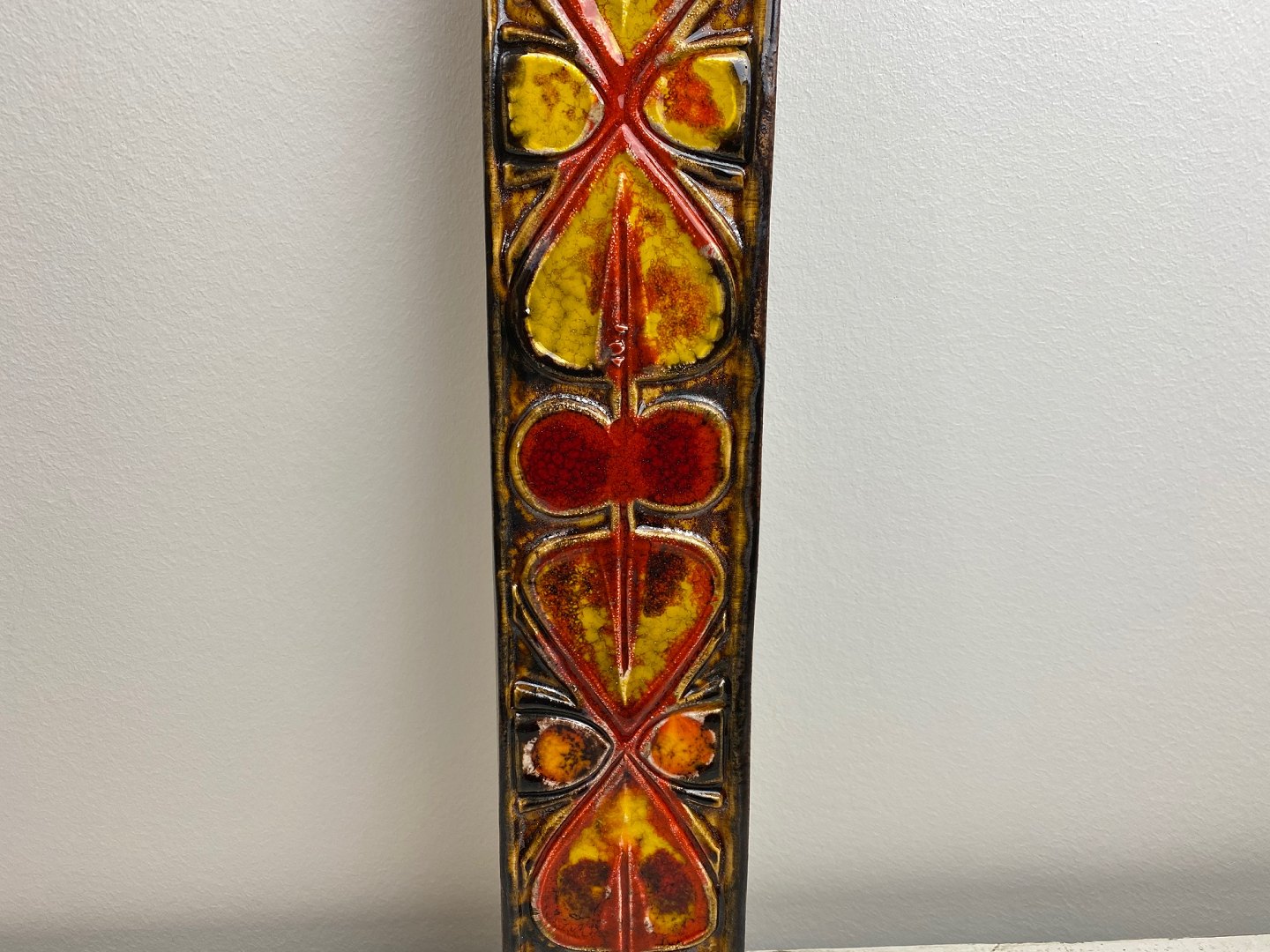 Relief fra Tilgmans keramik i Sverige i pangfarver, 1960'erne-1970'erne. Relieffet er 48,50 centimeter højt og 8,50 centimeter bredt. God stand. Sku 1289