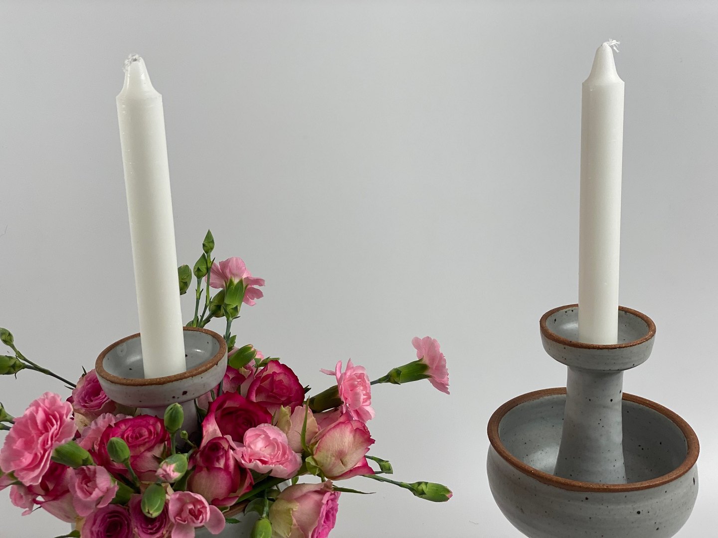 Helle Allpass, eget værksted, par lysestager af keramik, cirka 1970'erne.
