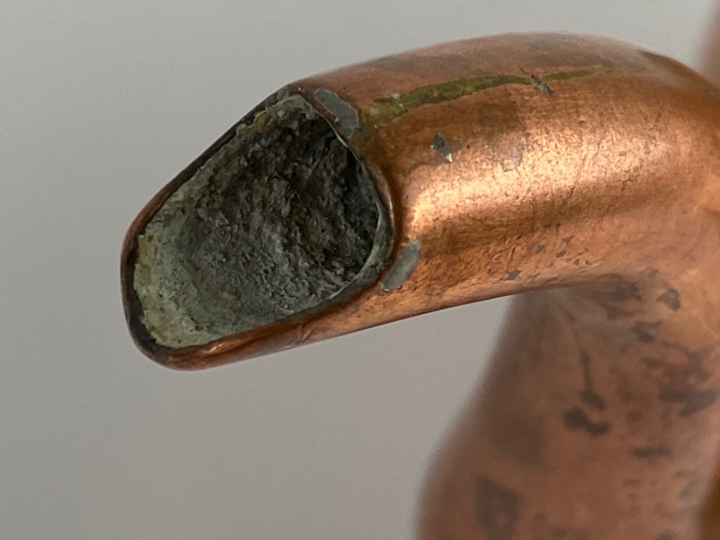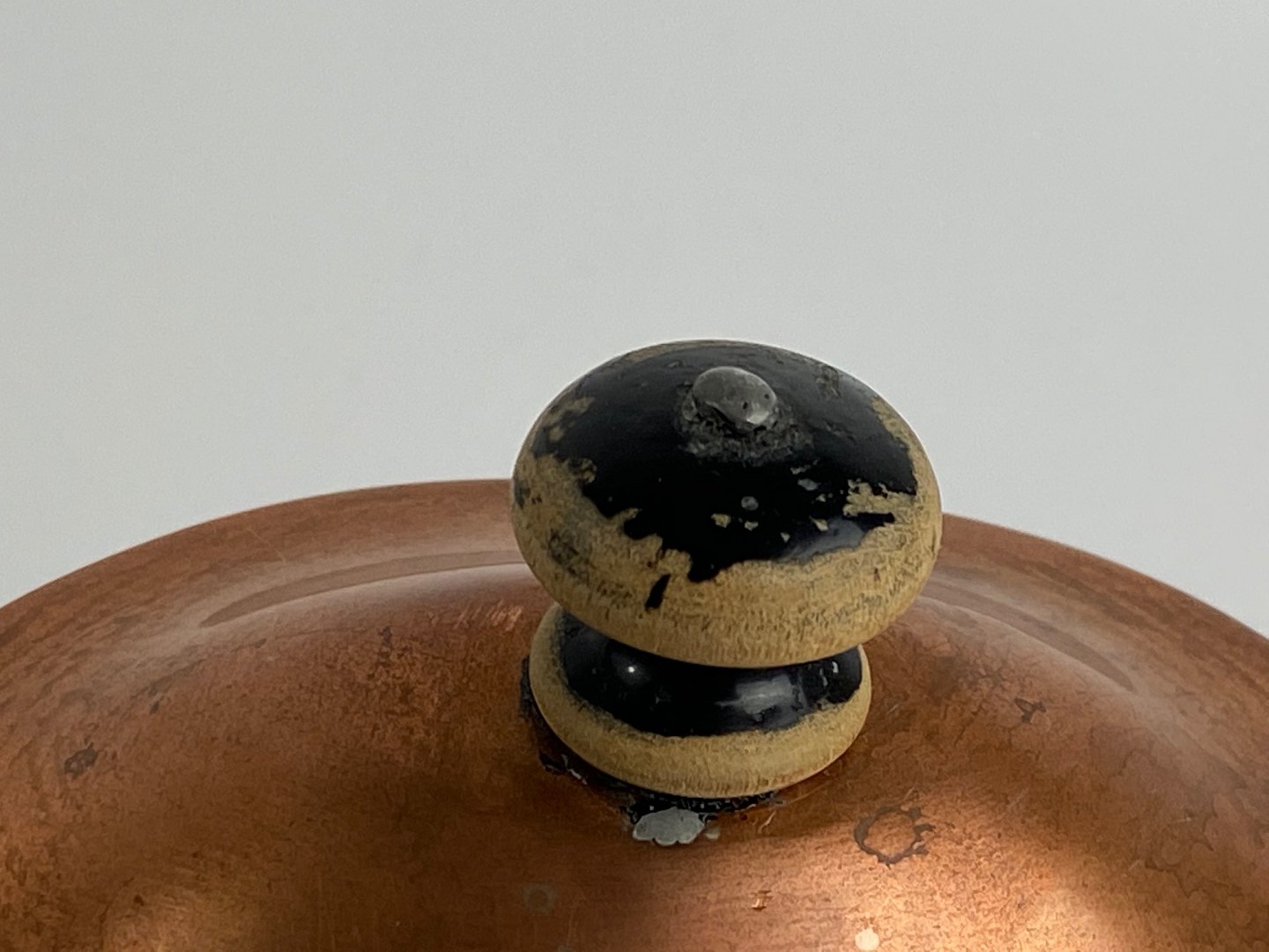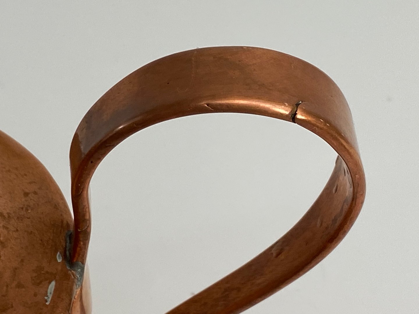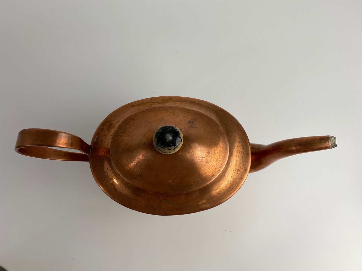 Dansk antik empire tekande, kobber og tin, fra det 19. århundrede. Tekanden er stemplet med dansk kobberstempel. Lågknop af træ. Fin antik stand. Bemærk hak på hank.