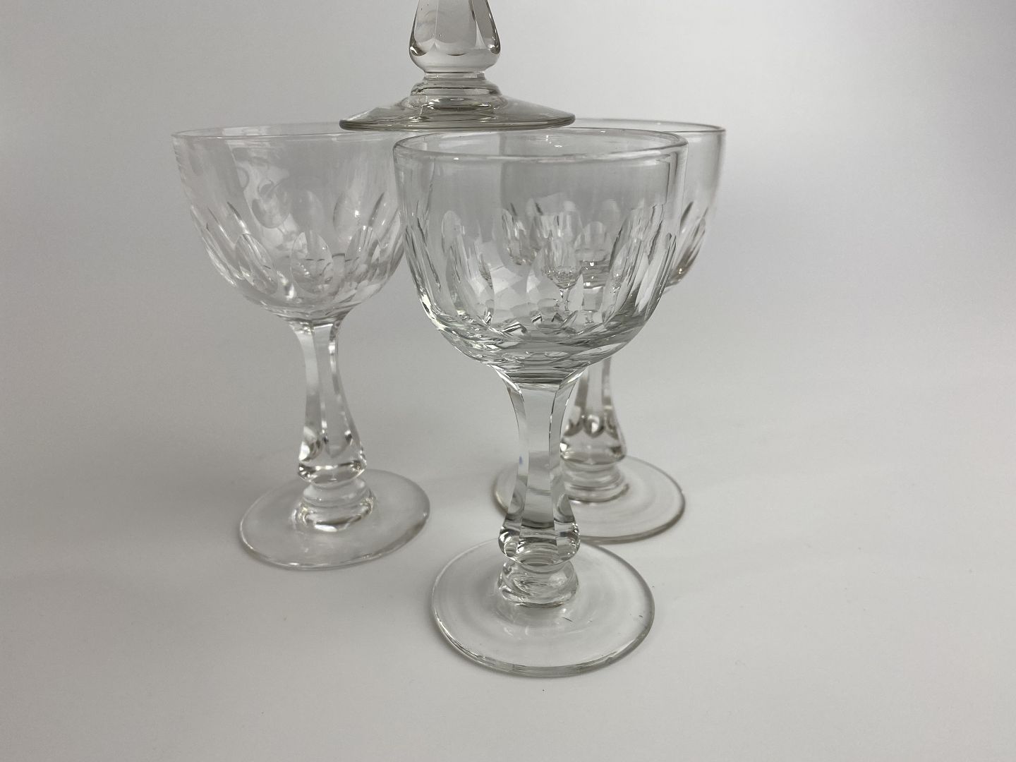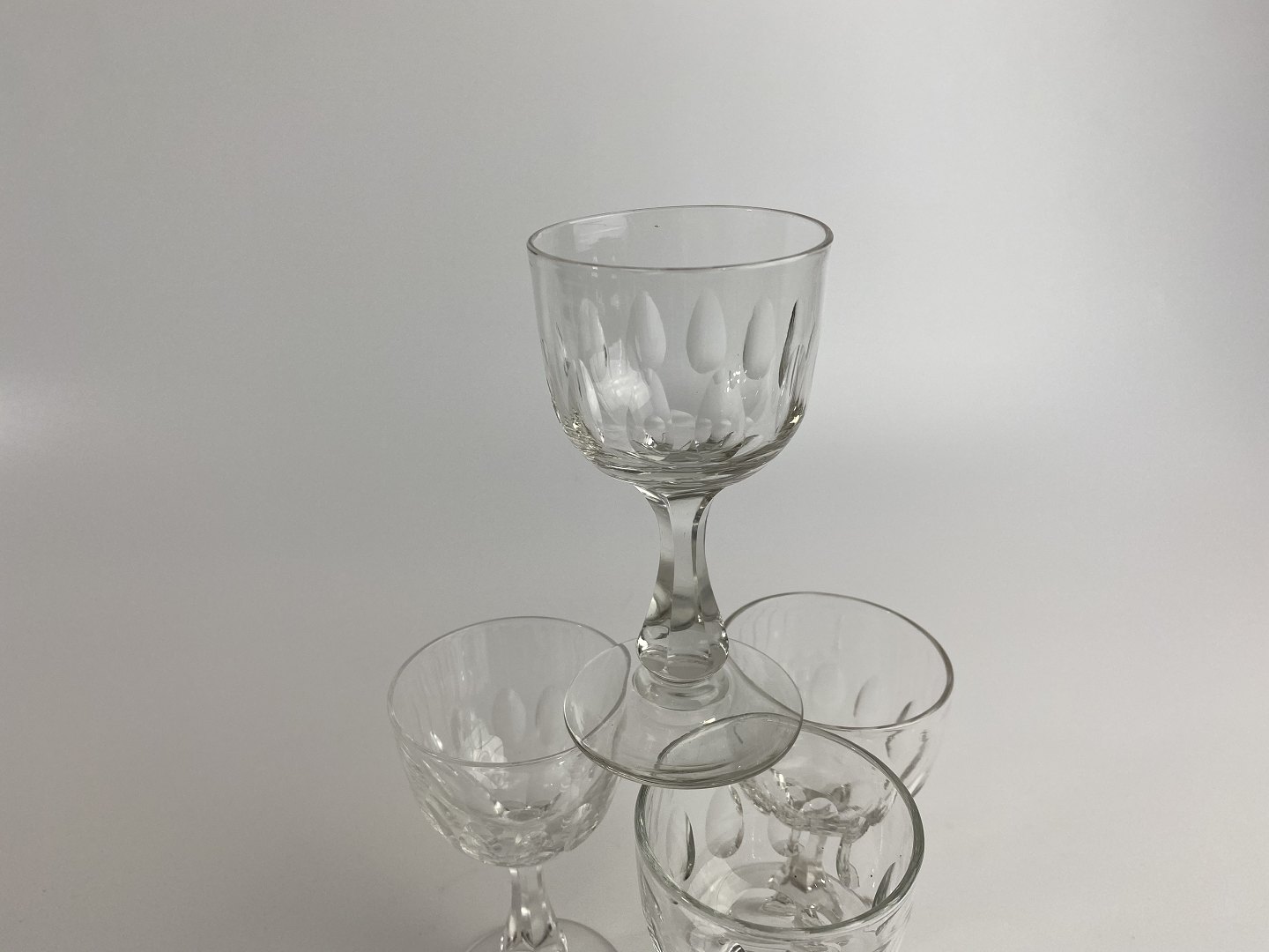 Derby hedvinsglas / sherryglas / portvinsglas med olivenslebet kumme og facetteret stilk. Glasset er ca. 10,50 centimeter højt og 5,80 centimeter bredt. Perfekt stand.