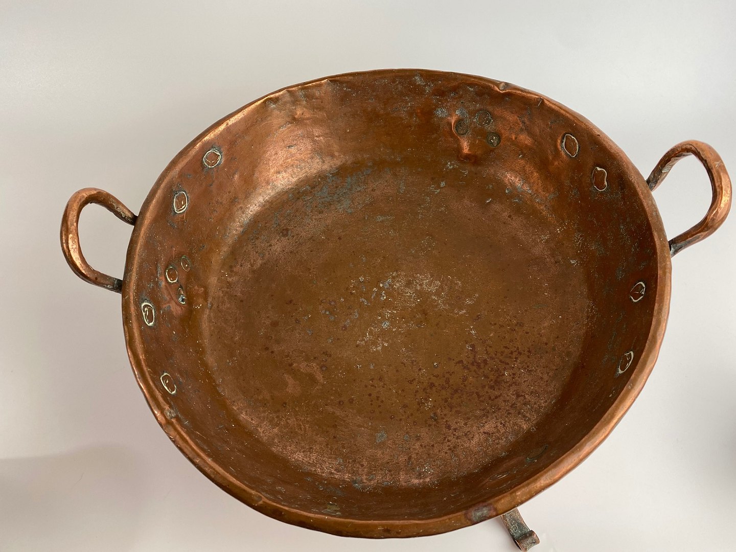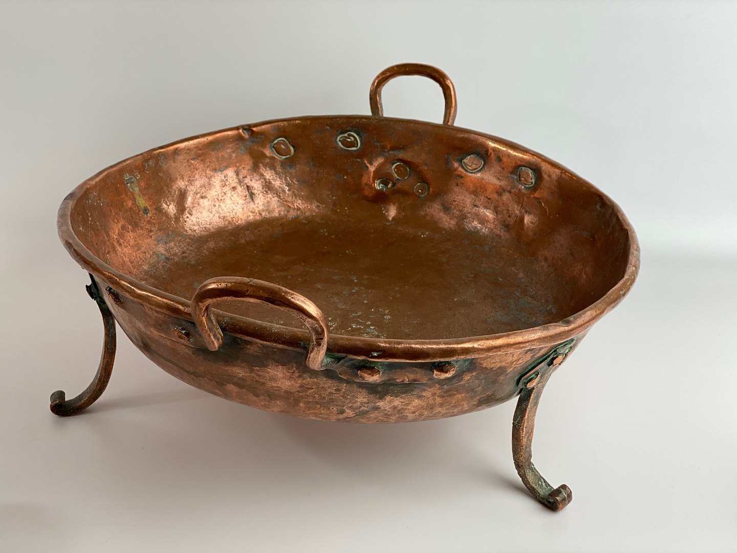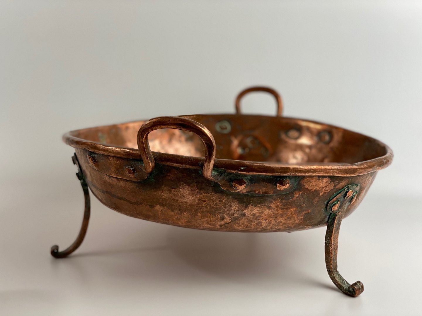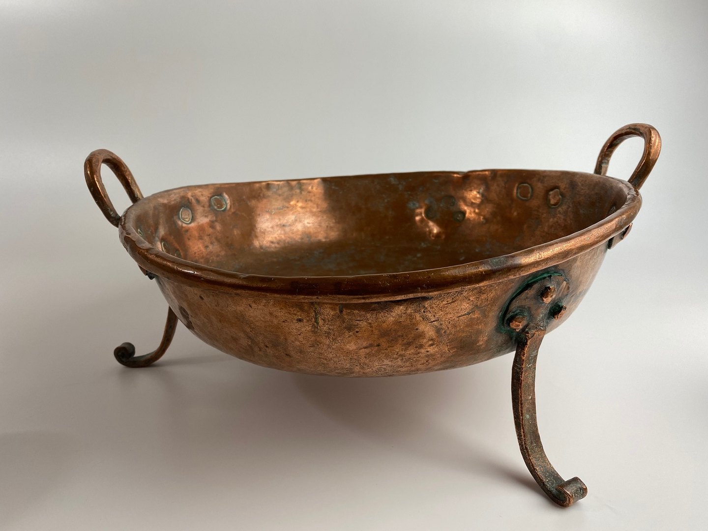 Tungt, antikt kobberfad på tre ben. 1800-tallet.