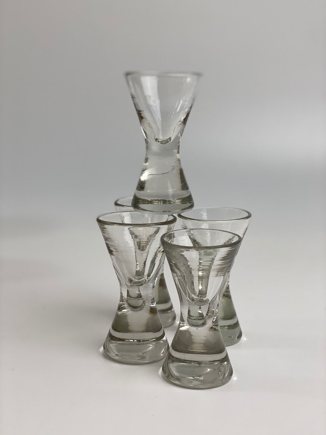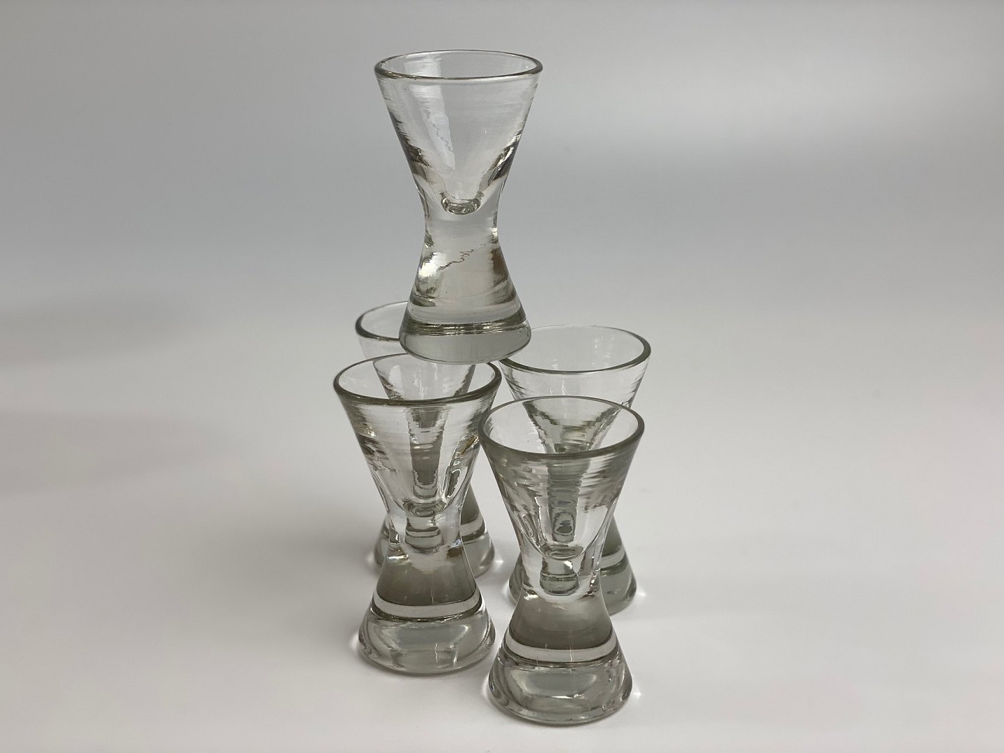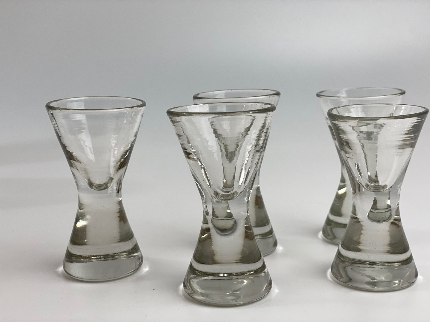 Timeglasformede frimurerglas, 9 centimeter høje. Massiv fod