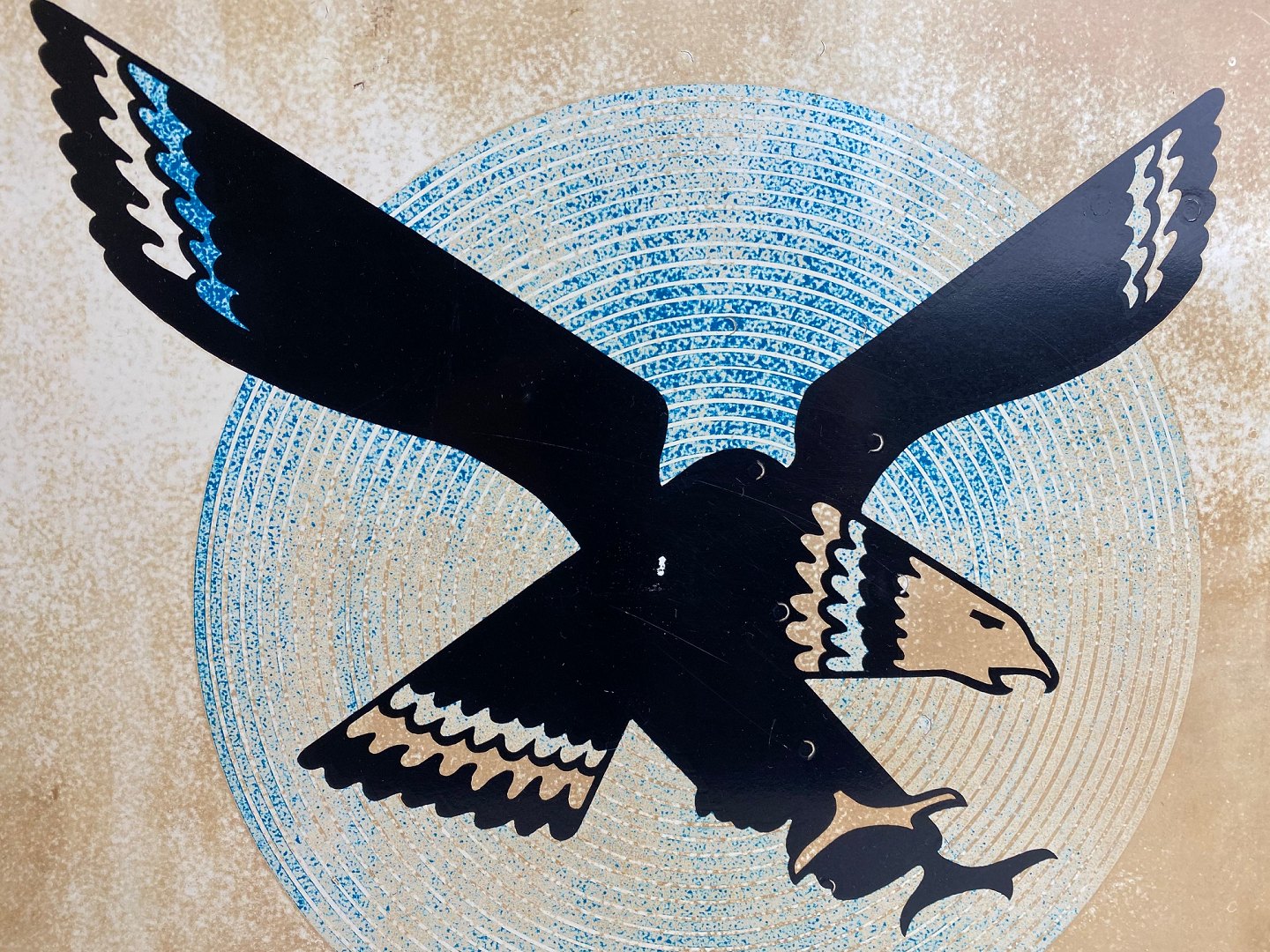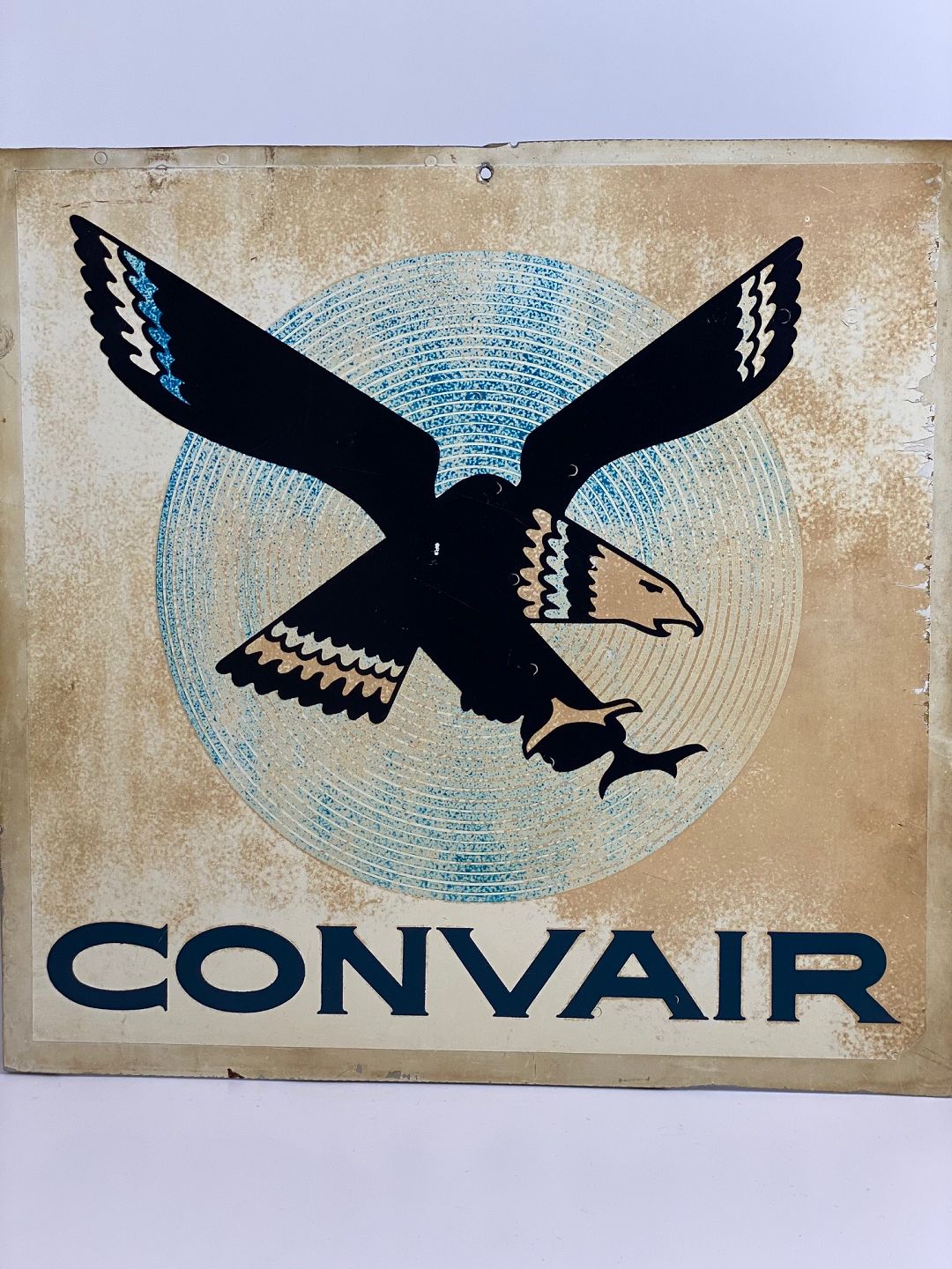 Der er tale om et "metalskilt" fra en del af et fly, som bærer CONVAIRs logo, som viser en flyvende sort ørn med beige og blå detaljer. Ørnen er på vej til at lande og ses på baggrund af en cirkel. Under billedet af ørnen står der "CONVAIR" i versaler. "Skiltet" er råt skåret og har et hjemmelavet hul til ophæng i toppen.
