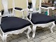 Par svenske rococo- / barok-stil stole fra begyndelsen af 20. århundrede. Hvidmalet træ og stolesæder, der er beklædt med sort stof.
