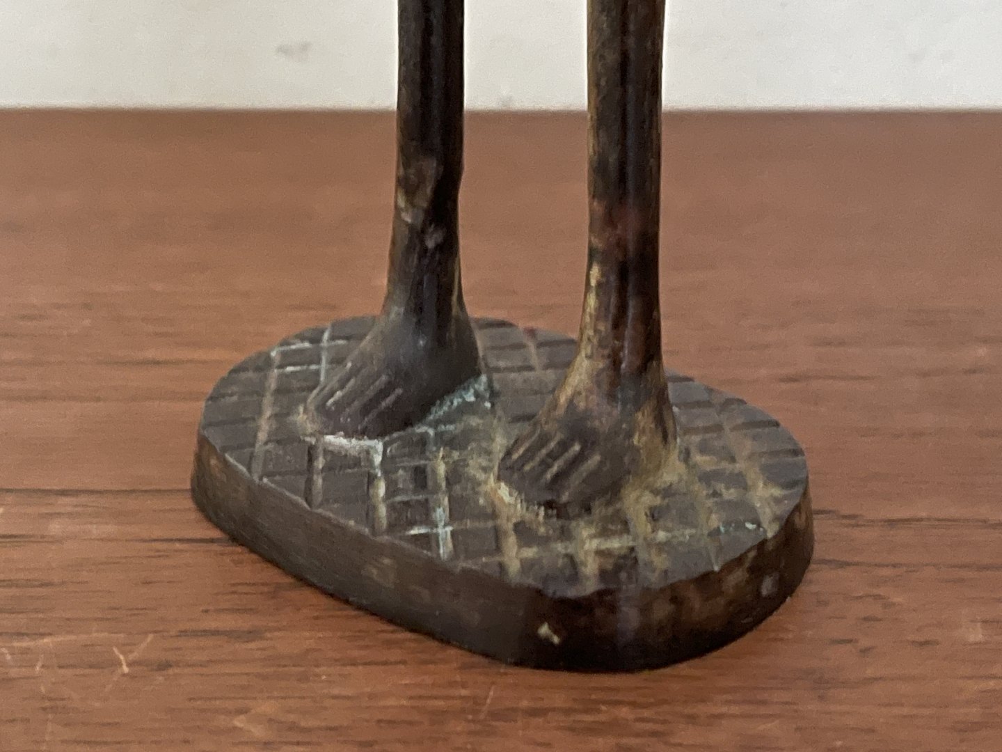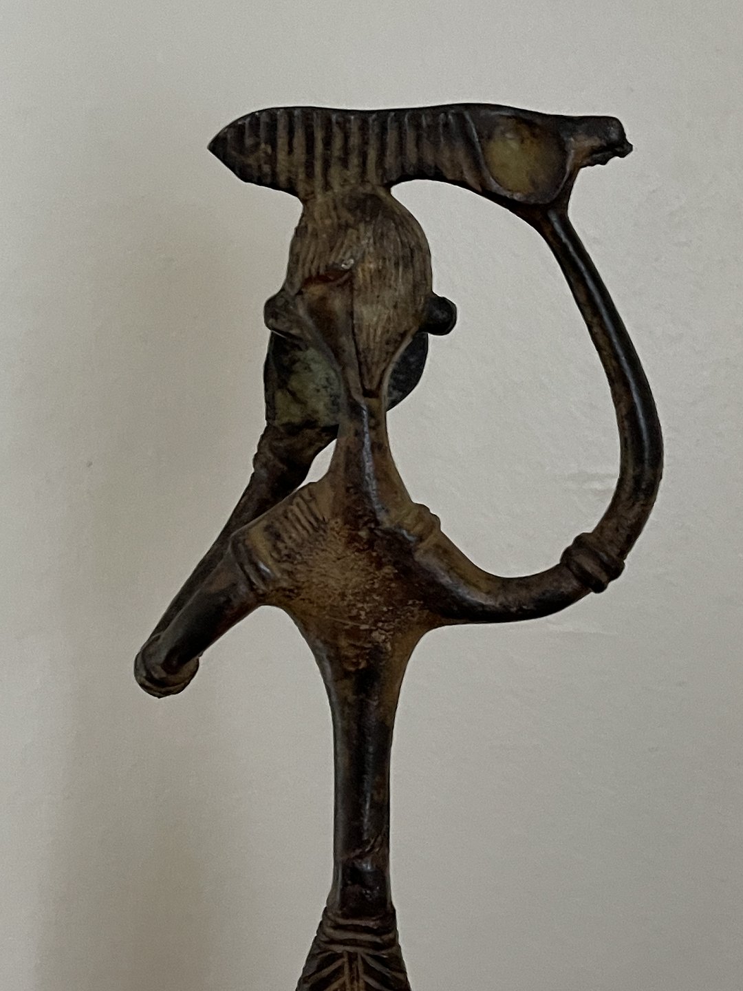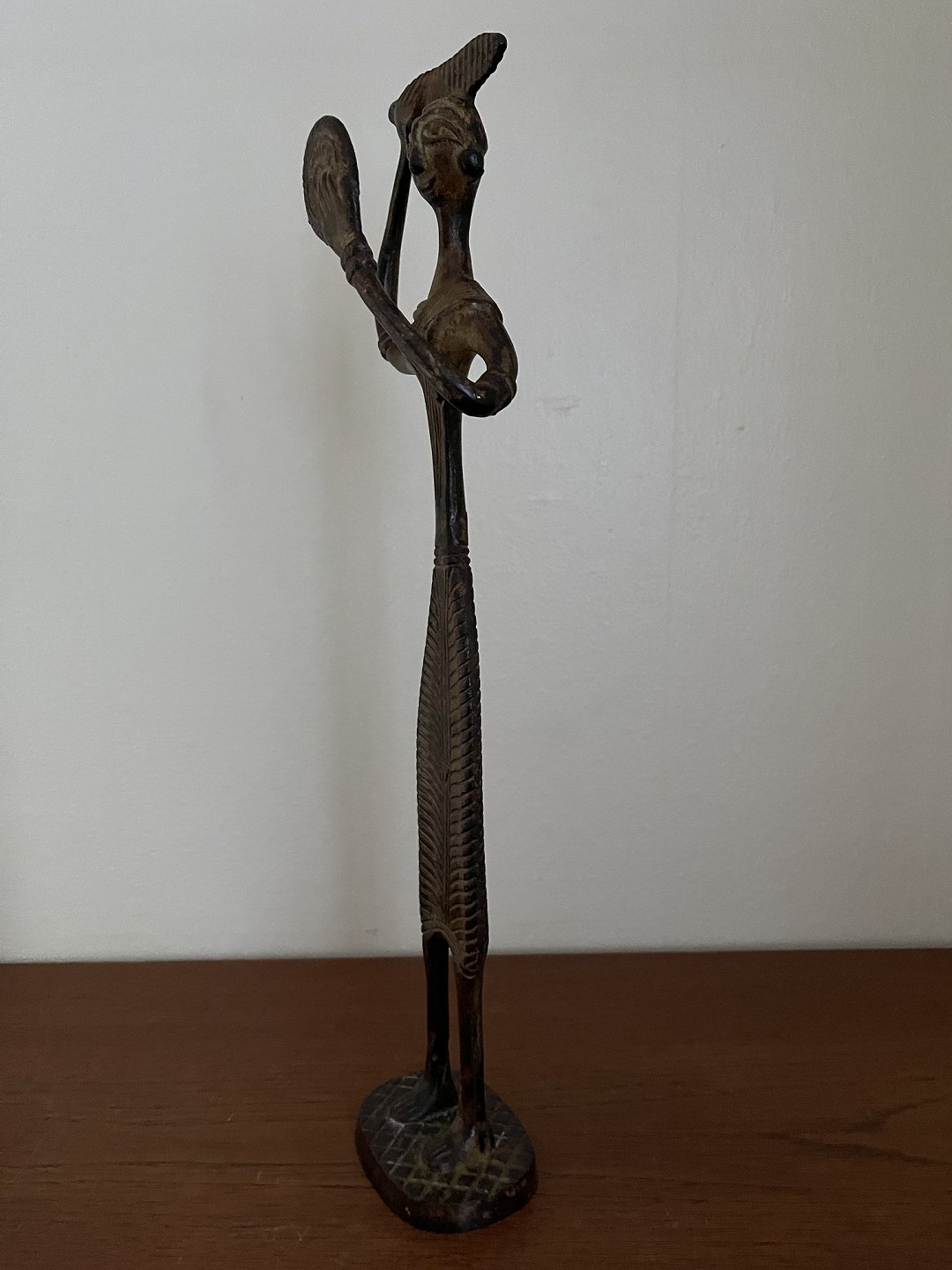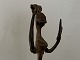 Stor asiatisk figur af bronze i form af kvinde, der reder sit hår, mens hun ser sig i spejlet.