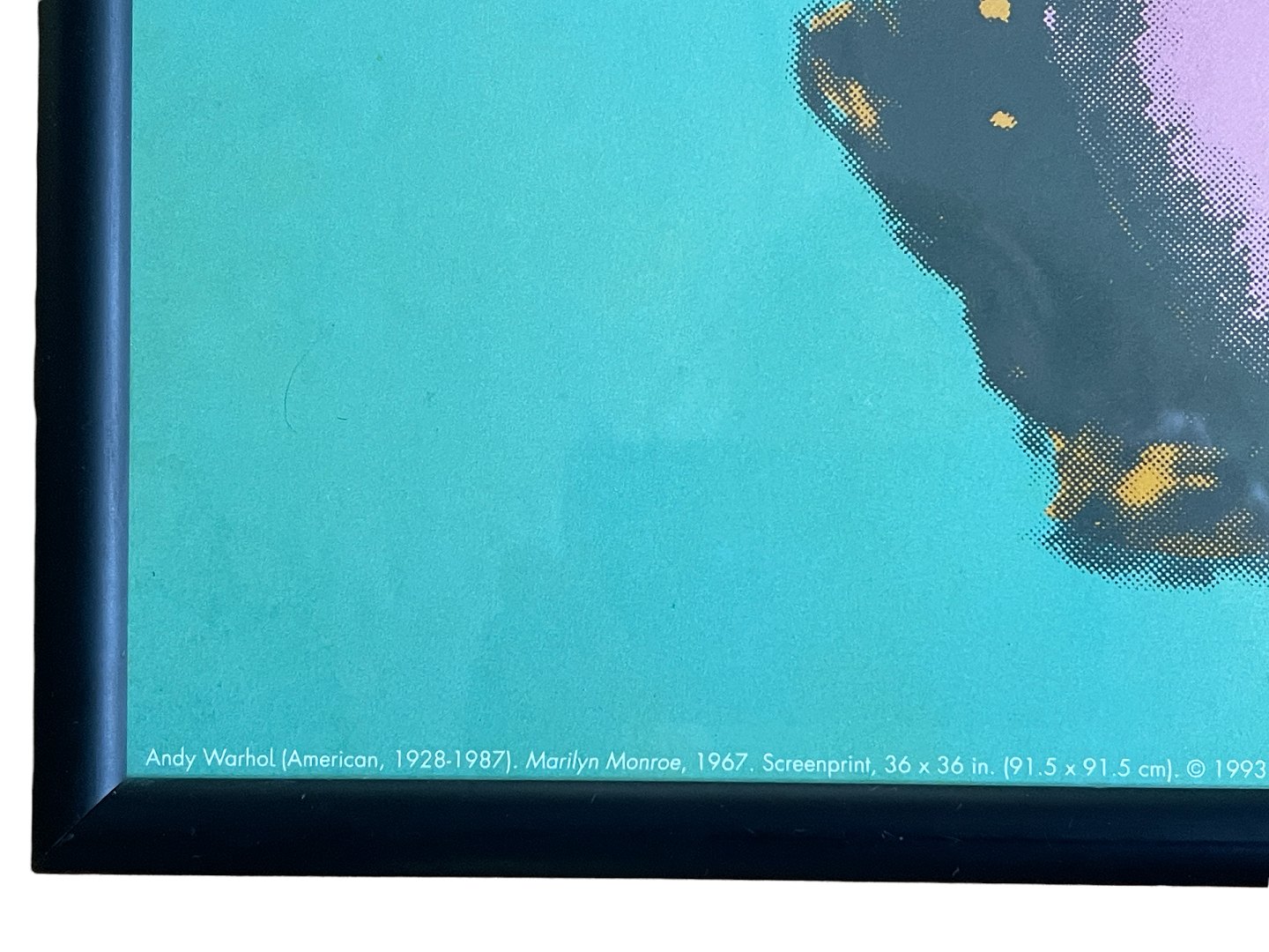 Andy Warhol, efter, plakat med Marilyn Monroe, udgivet i 1993, trykt i Tyskland. Indrammet. Det originale kunstværk af Warhol er fra 1967 lavet efter et foto af Marilyn Monroe fra 1953.