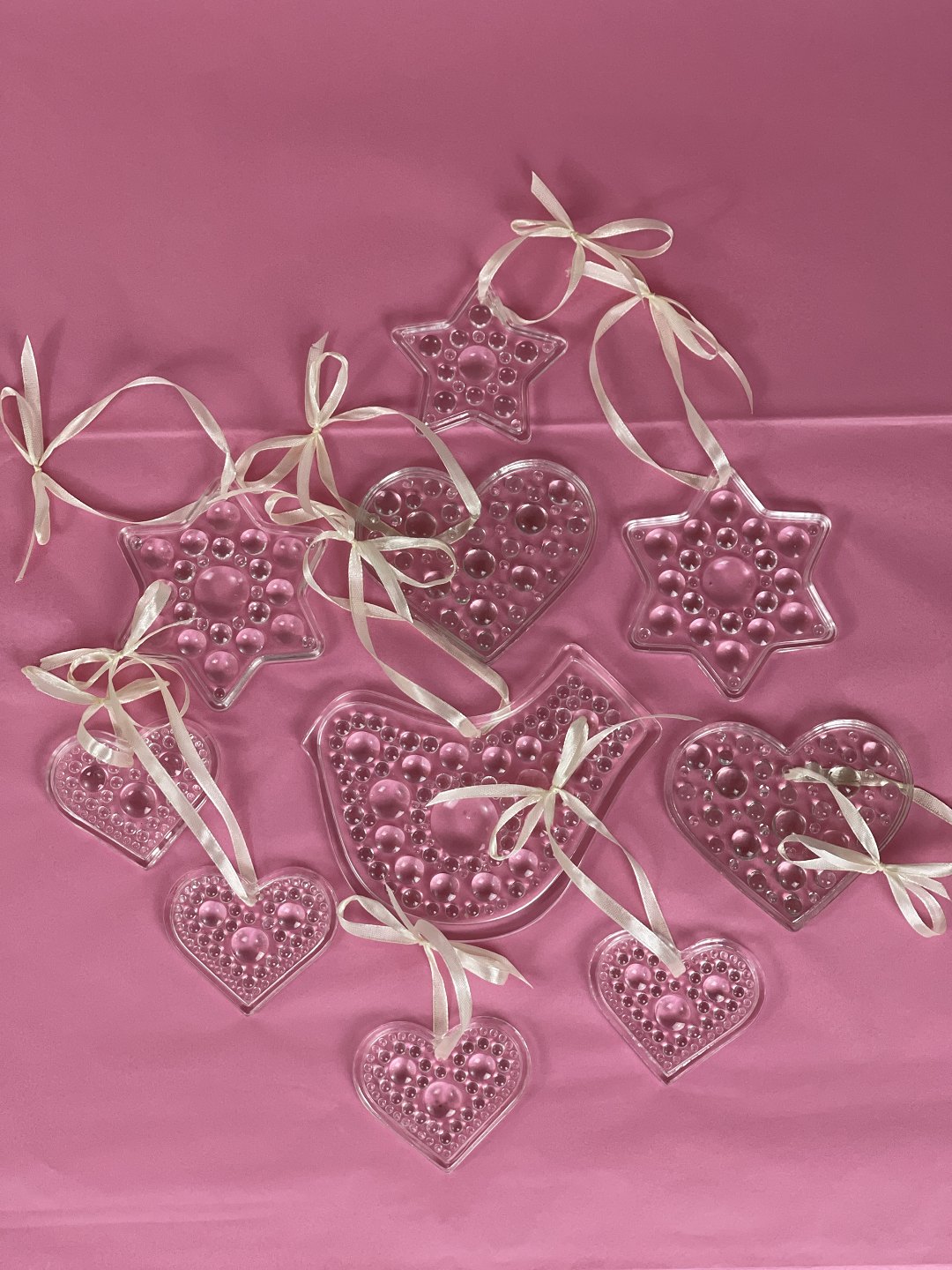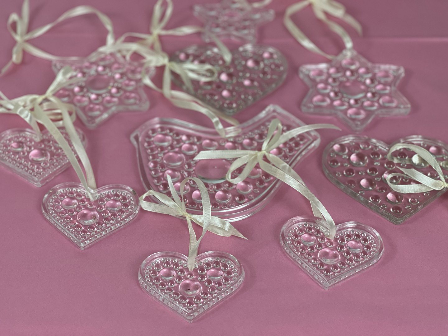 10 Norwegian sun catchers / glass Christmas decorations from Hadeland glass factory, circa 1980s: