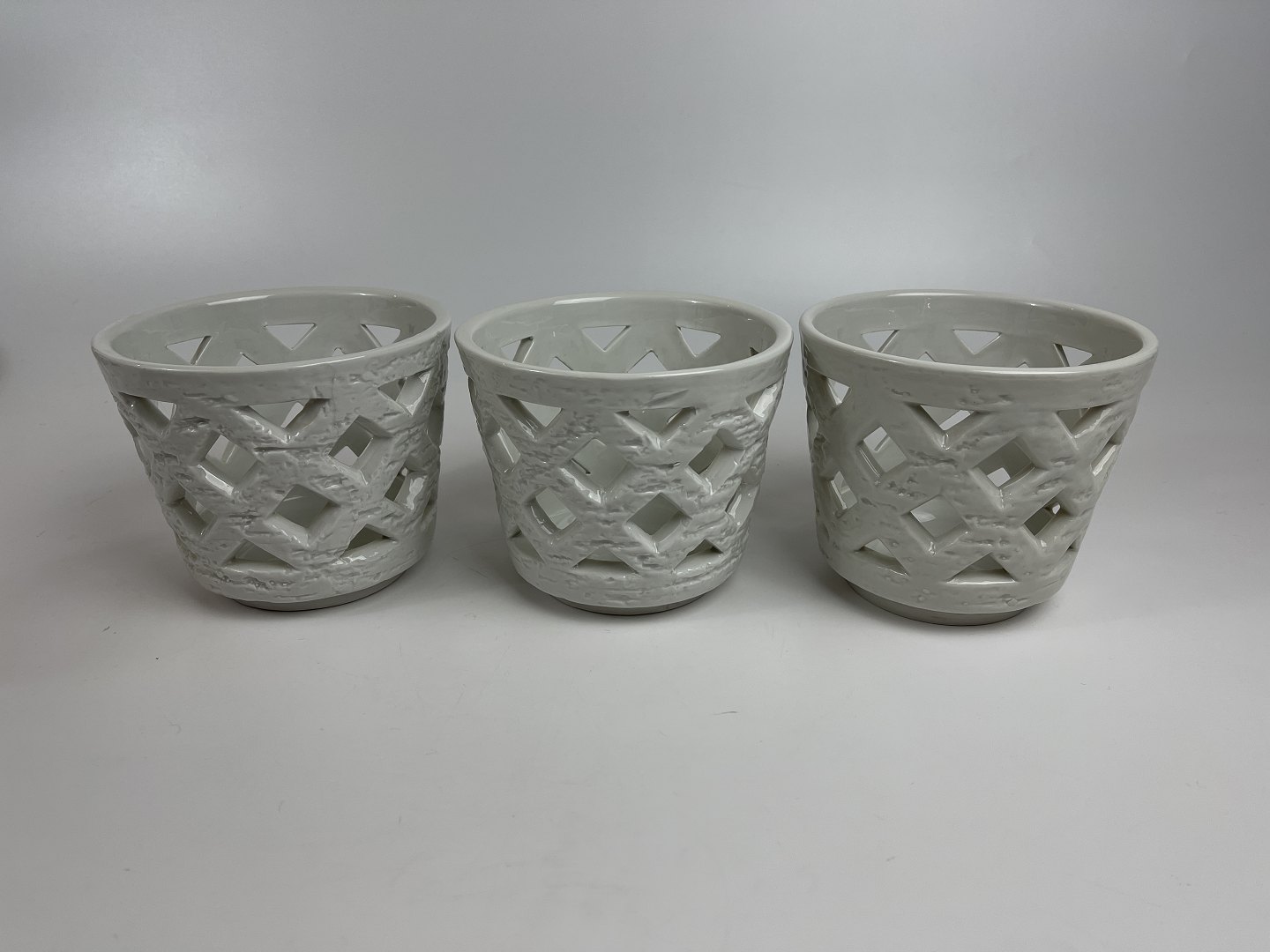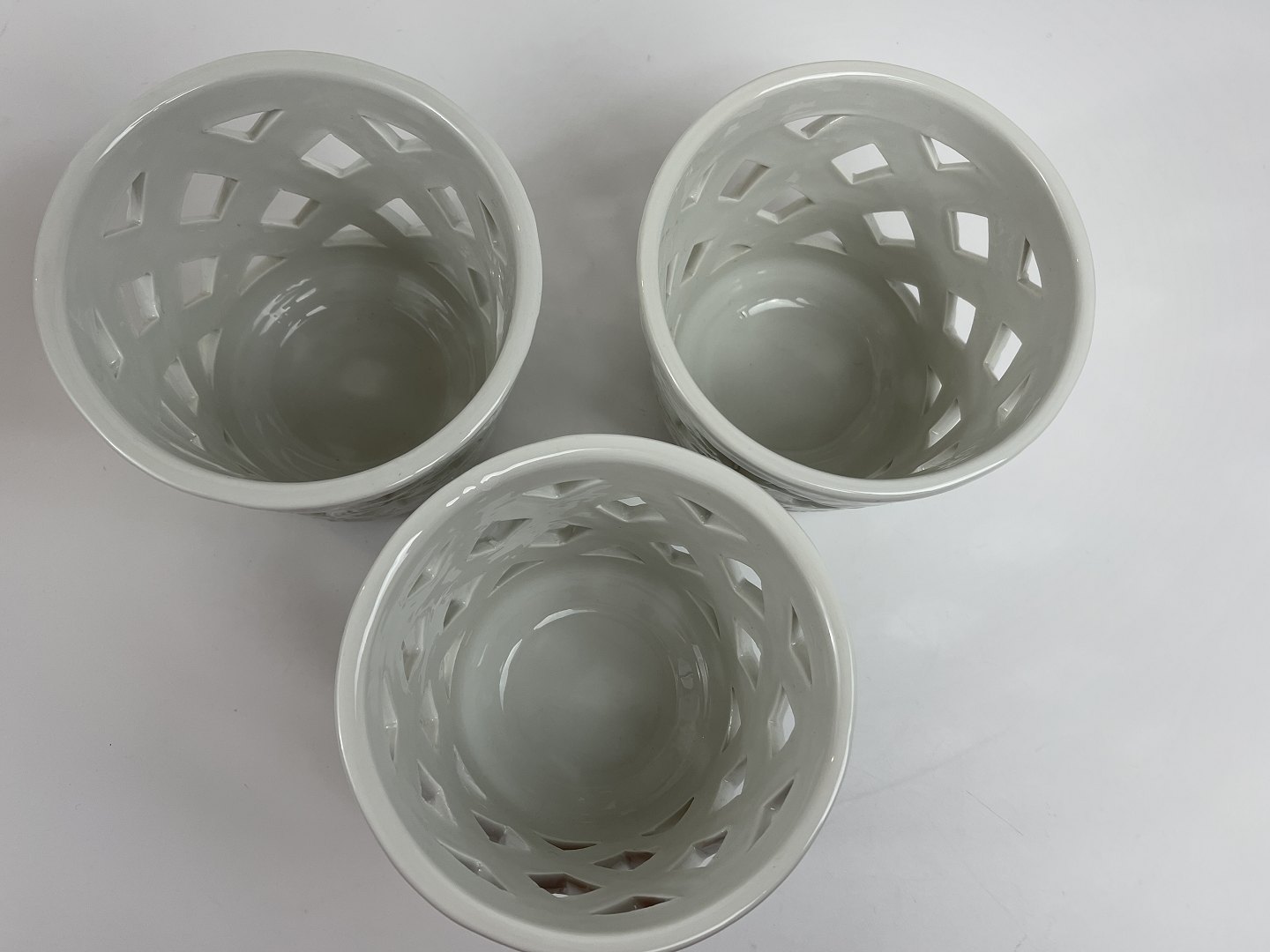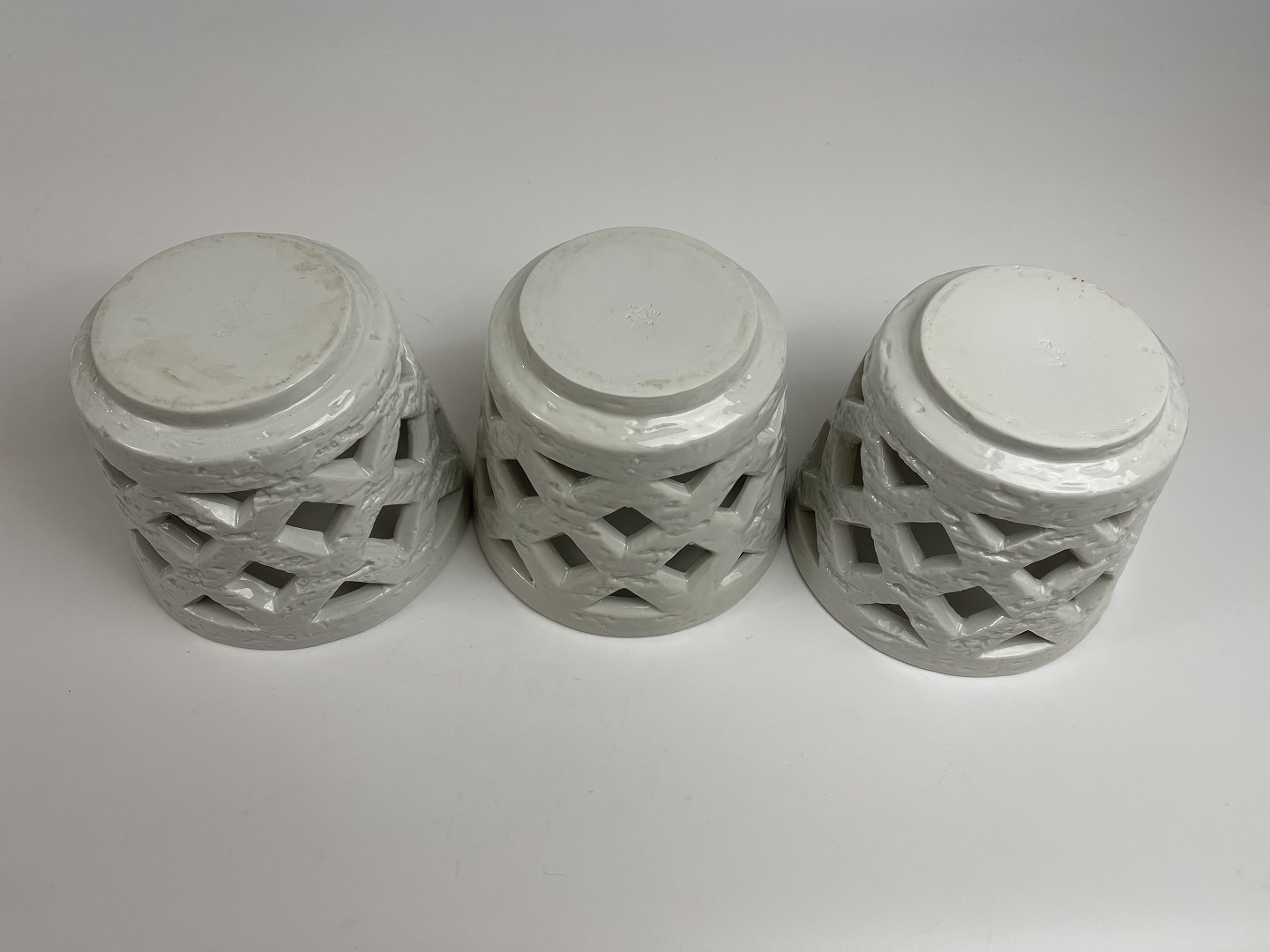 Gunnar Nylund for Rörstrand, sæt på tre råhvide chamotte-urtepotter. Urtepotterne er alle signeret med svenske Rörstrands signatur samt med Gunnar Nylunds initialer, GN.
