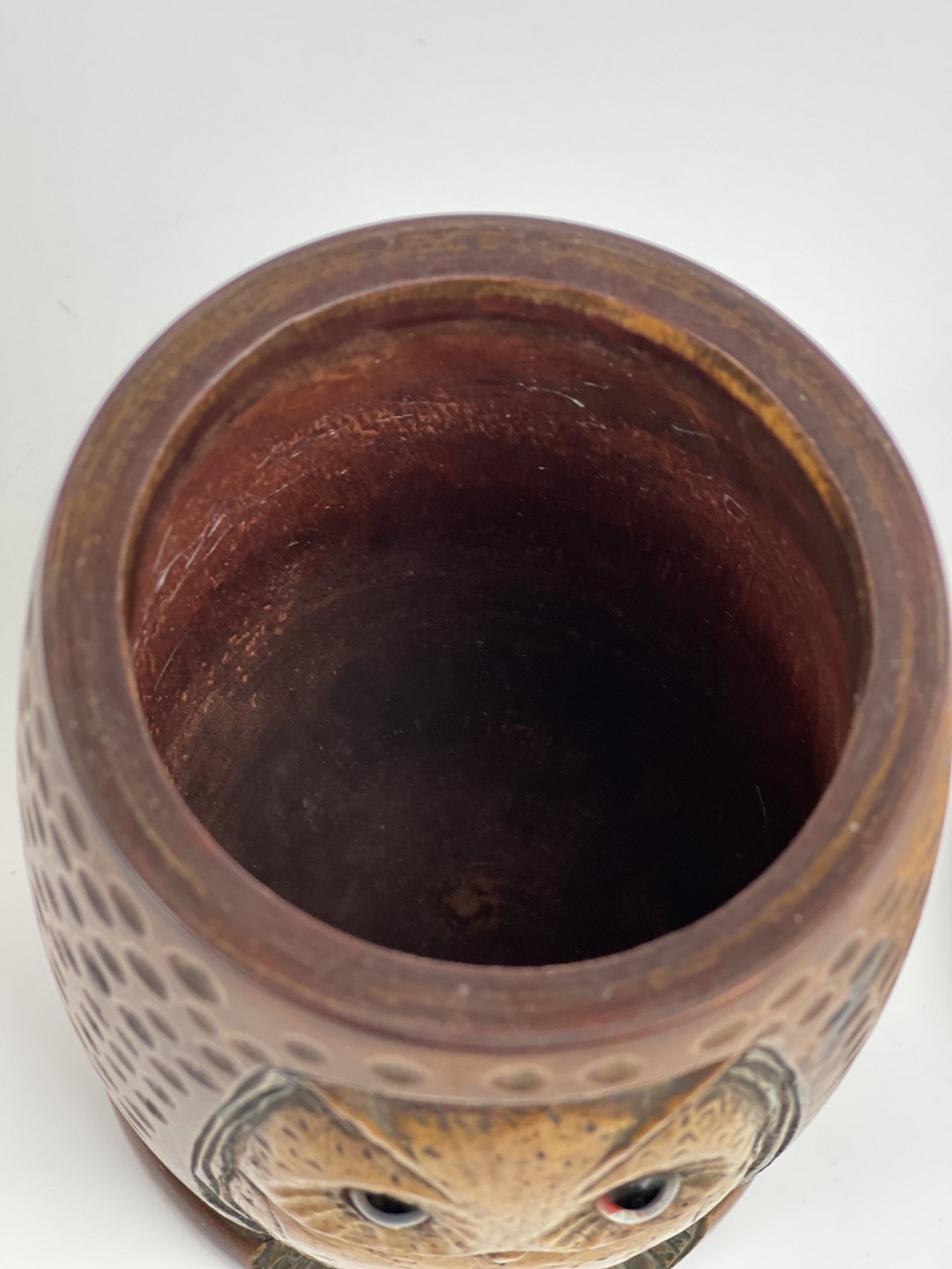 Uglekrukken har en fin patina og er i fin stand. Se fotos. Det lille uglehoved på toppen kan dog drejes rundt (uden at det virker løst).