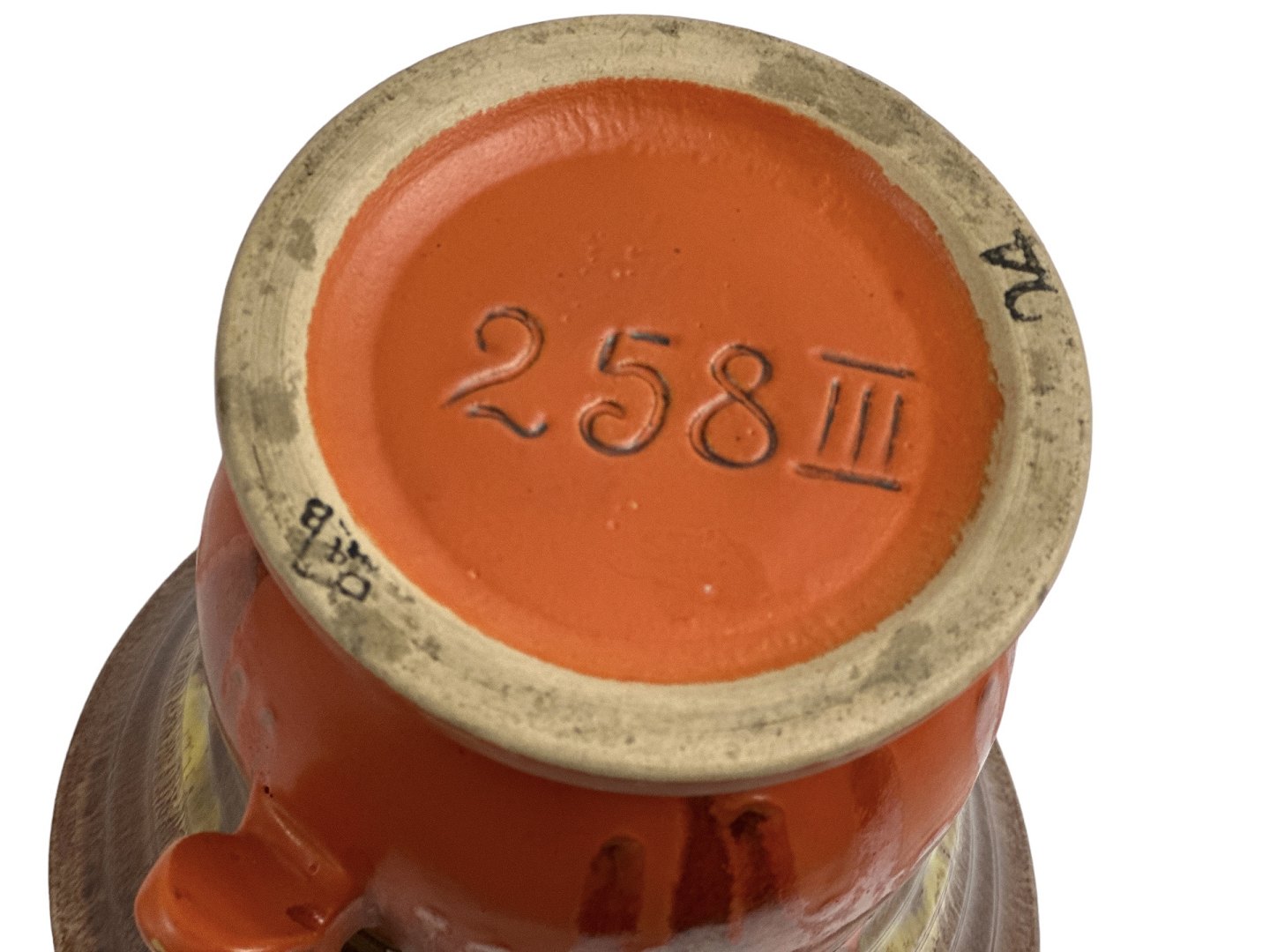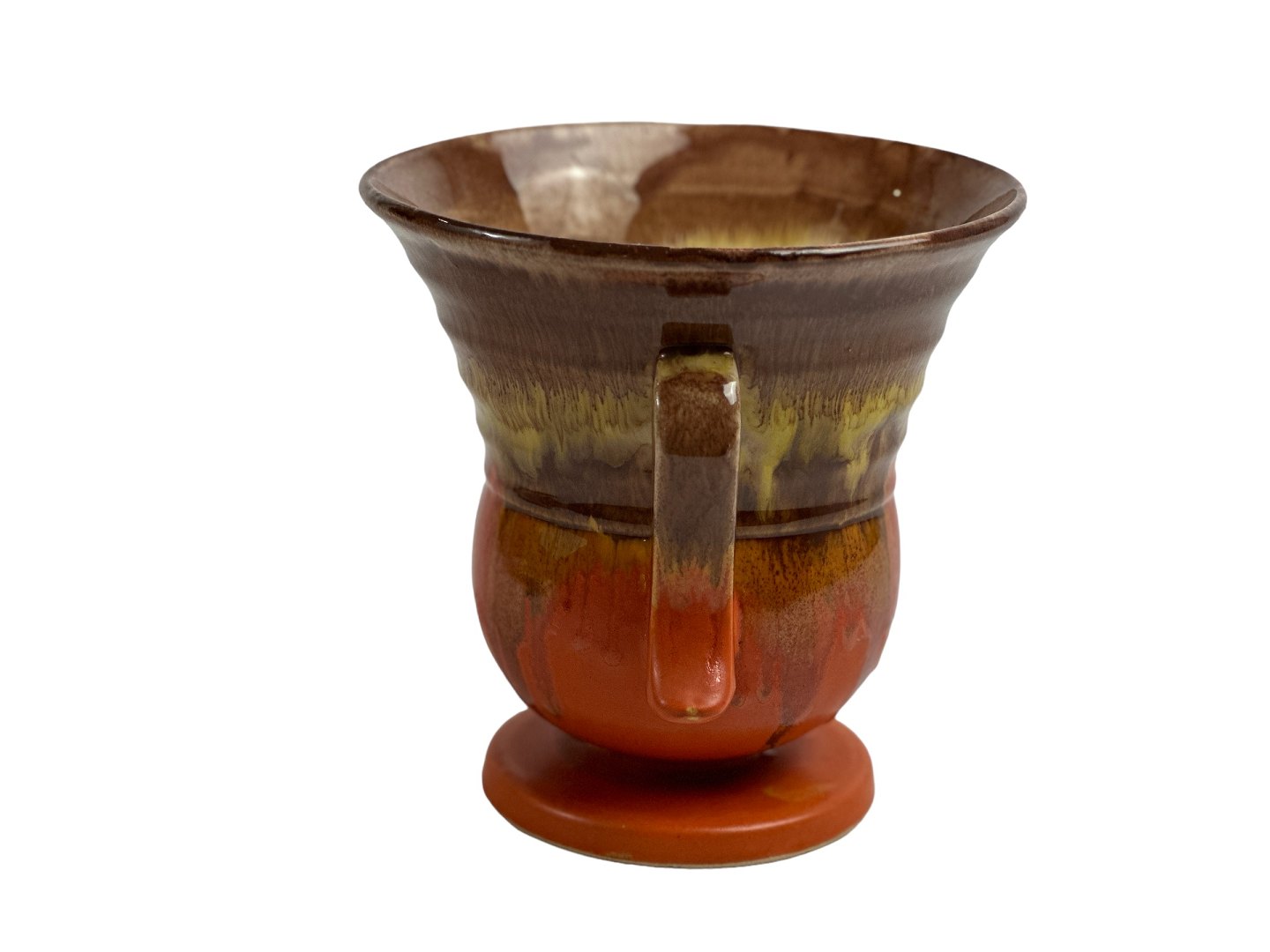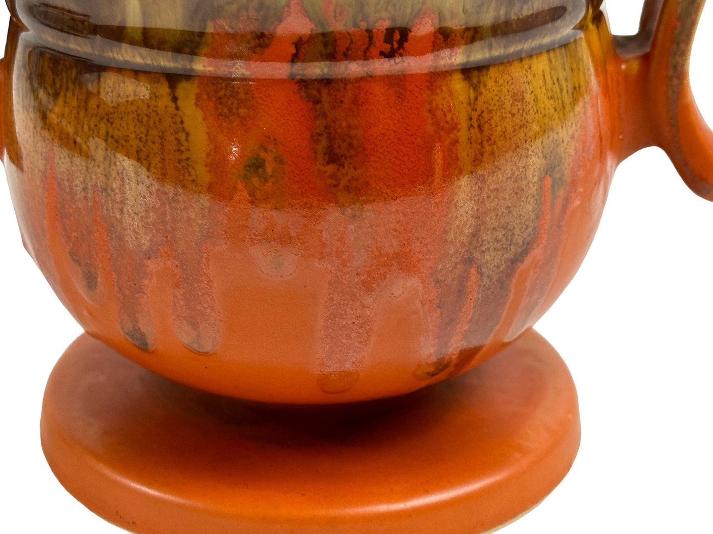 Dümler & Breiden, West Germany vase, Art Deco form med løbeglasur. Beige, gul og orange. Fin udbredende form til tulipaner og andre buketter.