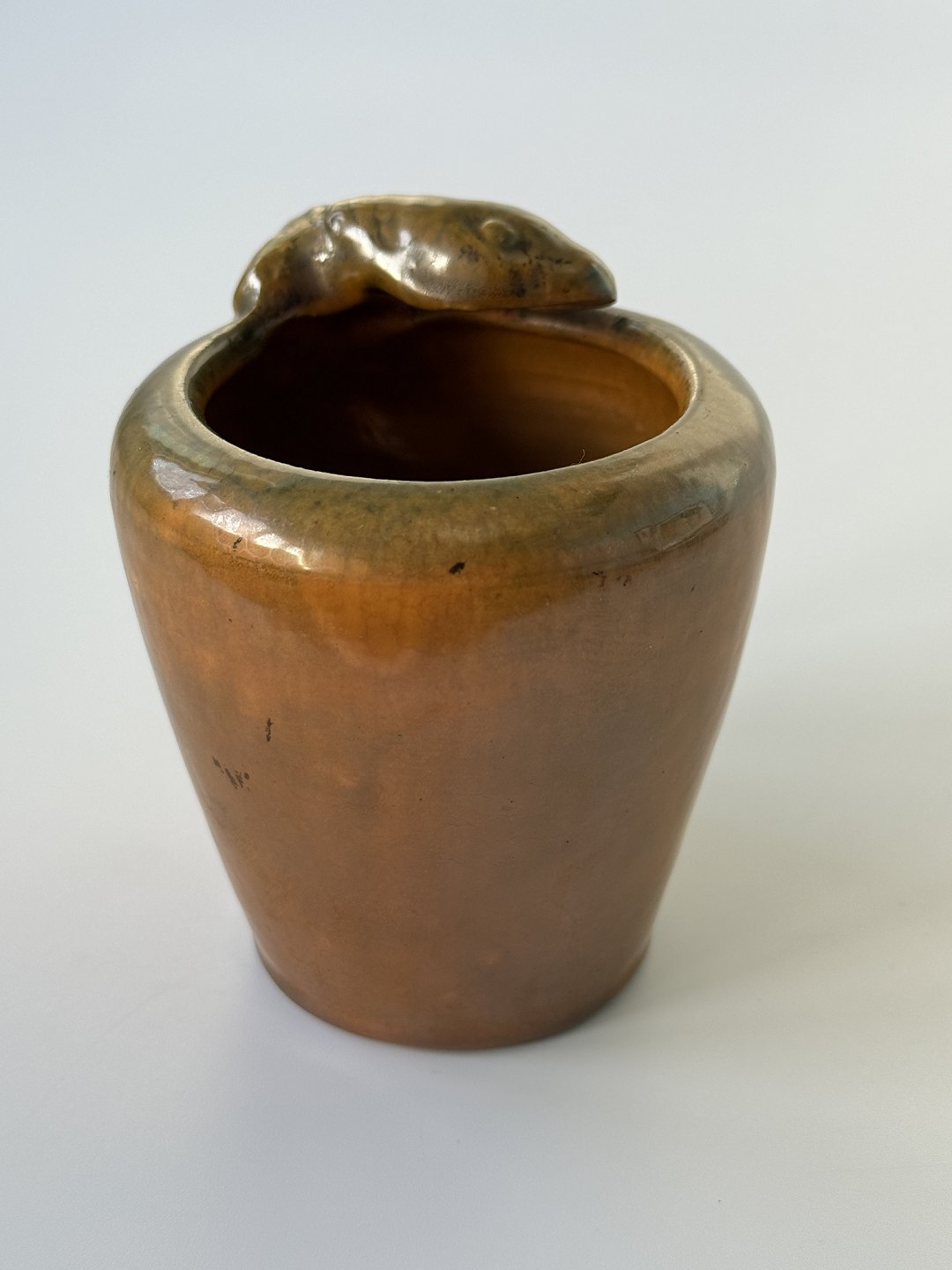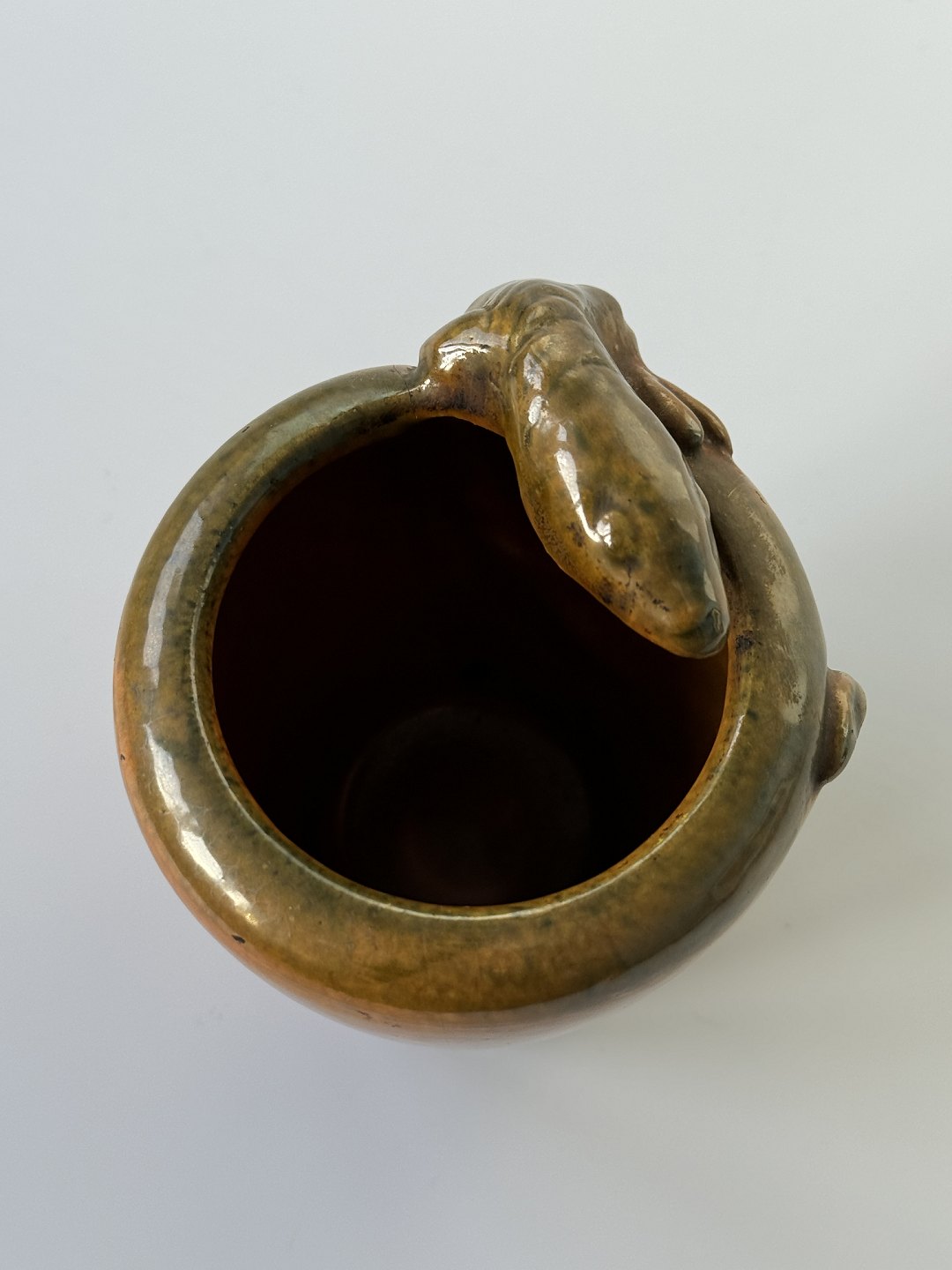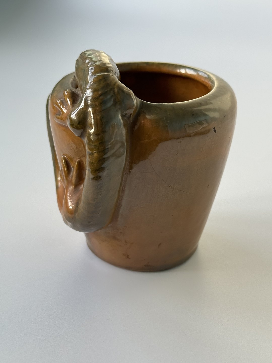Miniature skønvirke / Art Nouveau vase med klatrende firben / øgle, 10 cm høj