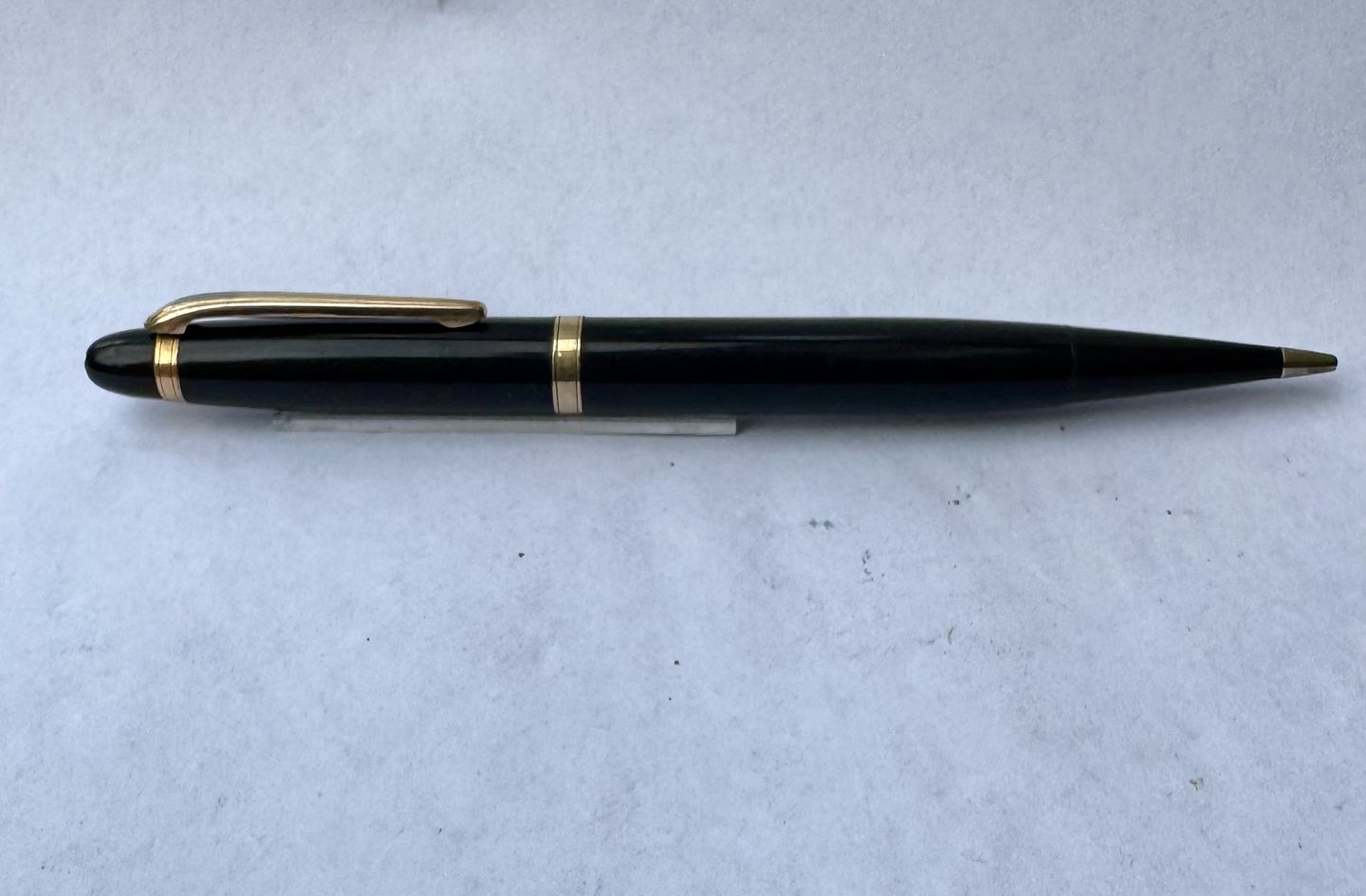 Black Montblanc no. 15 mechanical pencil. In good condition. Ready to use. Lead pins must be purchased before it can write again.